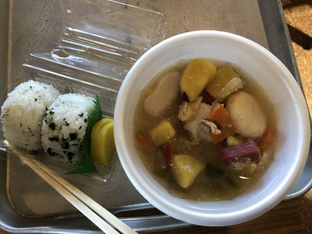 教会学校のこどもたちと教師が苗を植えて育てたサツマイモも80本余り収穫できて、たっぷりと具に入っています。